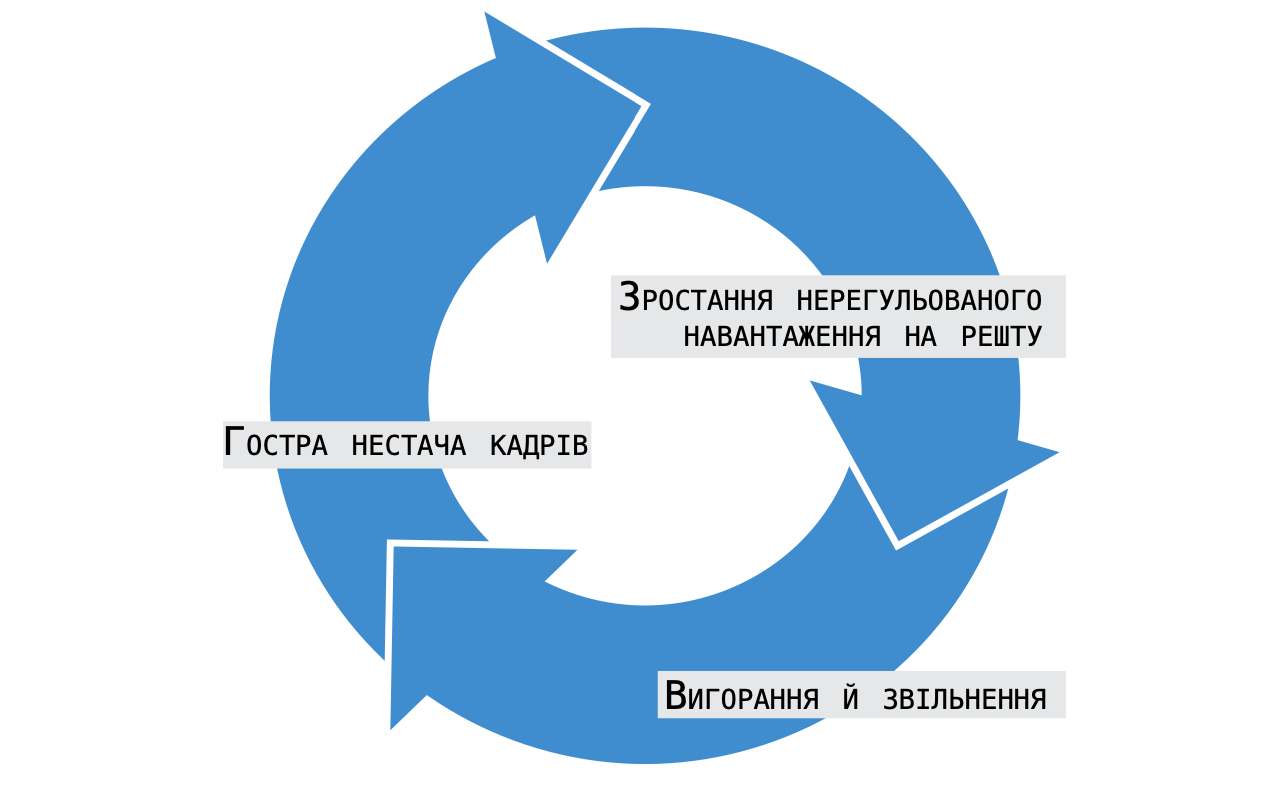 Утворюється замкнене коло, де низькі зарплати, складні умови праці, загальний брак фінансування та непродумані адміністративні рішення змушують багатьох працівниць — як медсестер, так і молодшого медичного персоналу — переходити у приватний сектор чи інші сфери зайнятості. Це, своєю чергою, збільшує навантаження на тих, хто залишається, погіршуючи умови праці й прискорюючи відтік кадрів.
